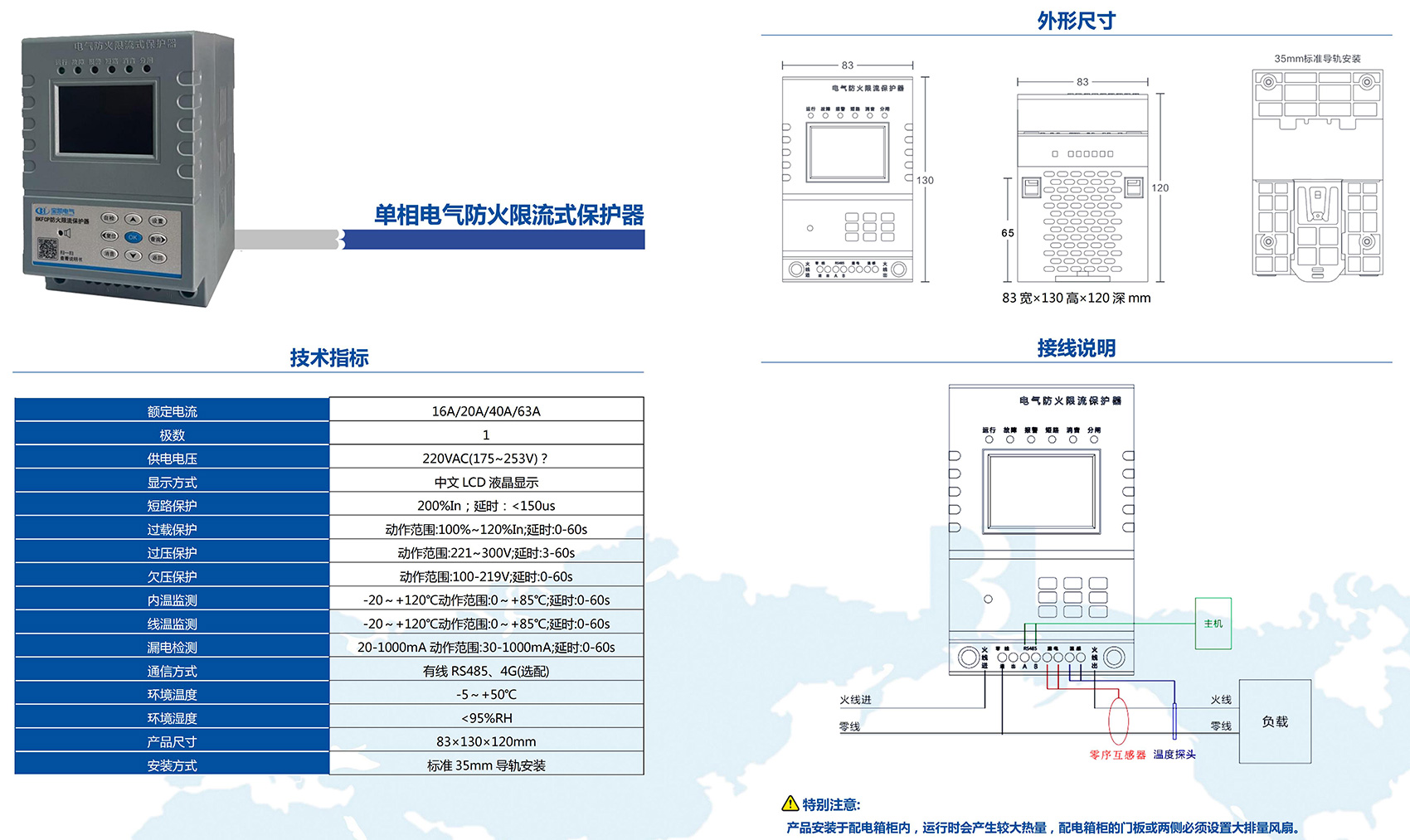 BKFCP系列電氣防火限流式掩護器,是一款能及時精確檢測出用電回路的電流,并能以微秒級速率疾速限定短路電流以實現滅弧掩護,并集電壓、電流、頻次、溫度(選配)、泄電(選配)等多種功效于一體,且具備智能化闡發才能的新型用電寧靜監控裝配。當被掩護線路中發生短路毛病時,電氣防火限流式掩護器能以微秒級速率疾速限定短路電流以實現滅弧掩護,在由短路發生的電流遠未到達短路電流前就實現限流,從而防備電氣線路短路進程中引發的持續拉弧打火等引燃可燃物形成的火警變亂,保證利用場合職員和財產的寧靜。